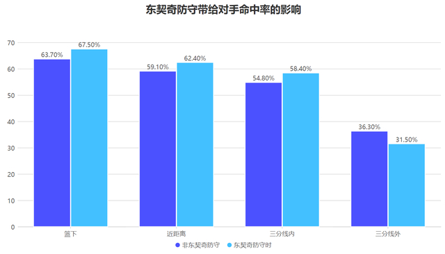 当然东契奇的防守端问题也不能忽视,作为外线球员他对三分线外的对手还有较高的降准率,而一旦对手杀入三分线内那么东契奇的防守就非常难以为继,虽然有着锋线的身高但他的护筐还会令对手命中率提升。